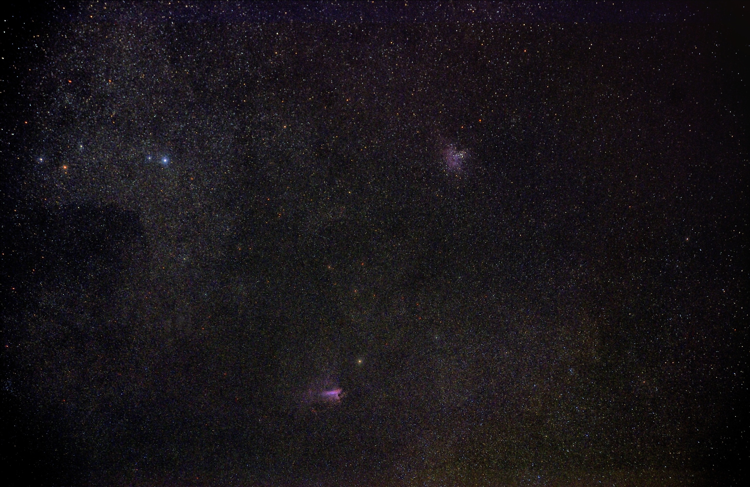 星雲中央付近に暗い線のようなものがありますが、「創造の柱」と言われる暗黒星雲だと思われます。