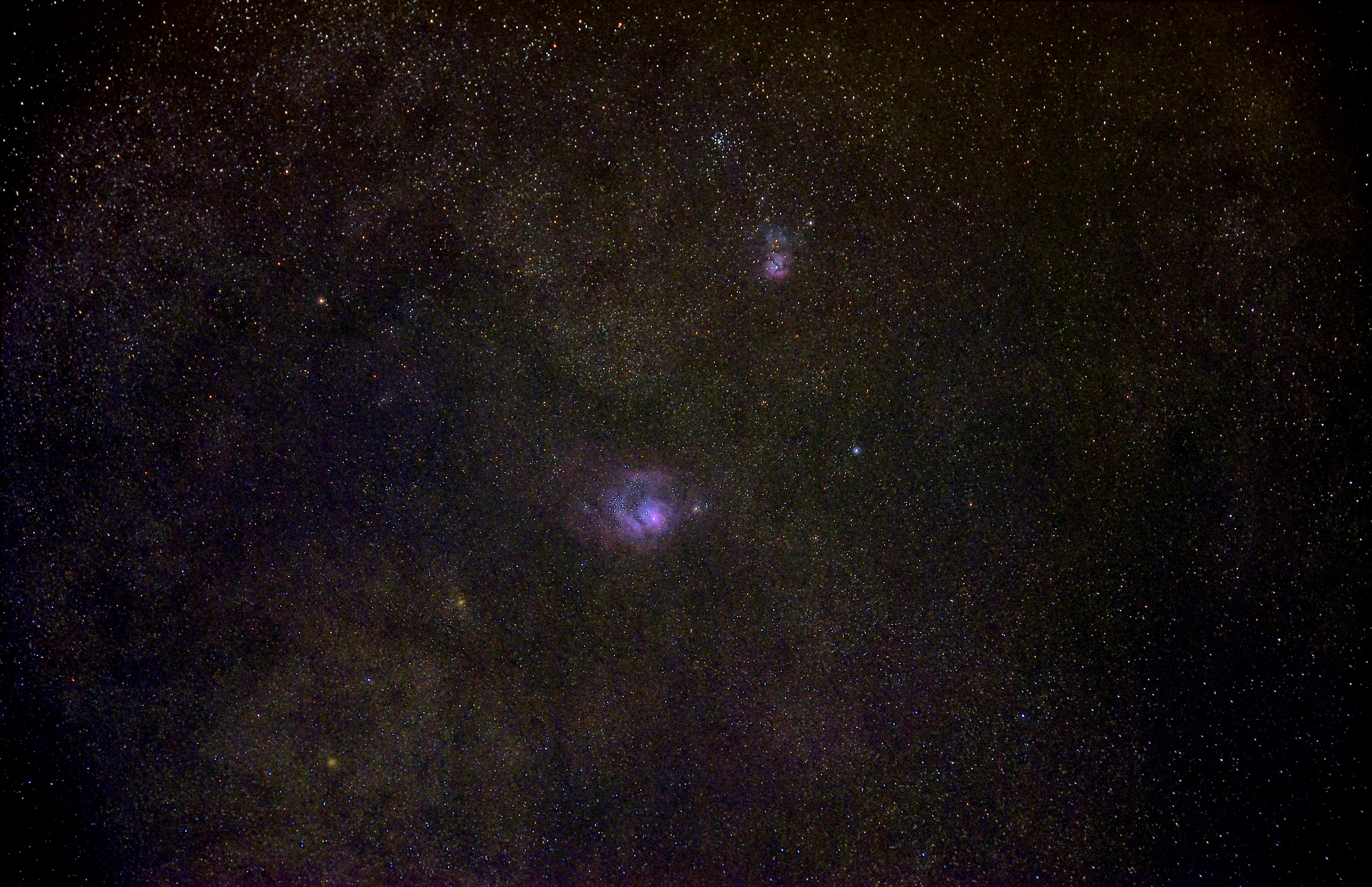 干潟星雲M8と三裂星雲M20は以前撮影したことがある(2012/6/15)が、撮影時間を増やしてよりノイズを少なくするように工夫しました。
