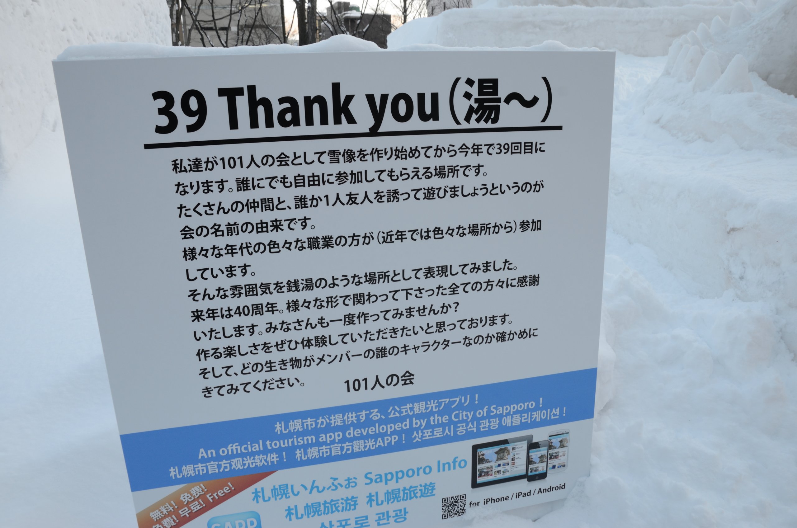 中雪像。101人による巨大な作品。