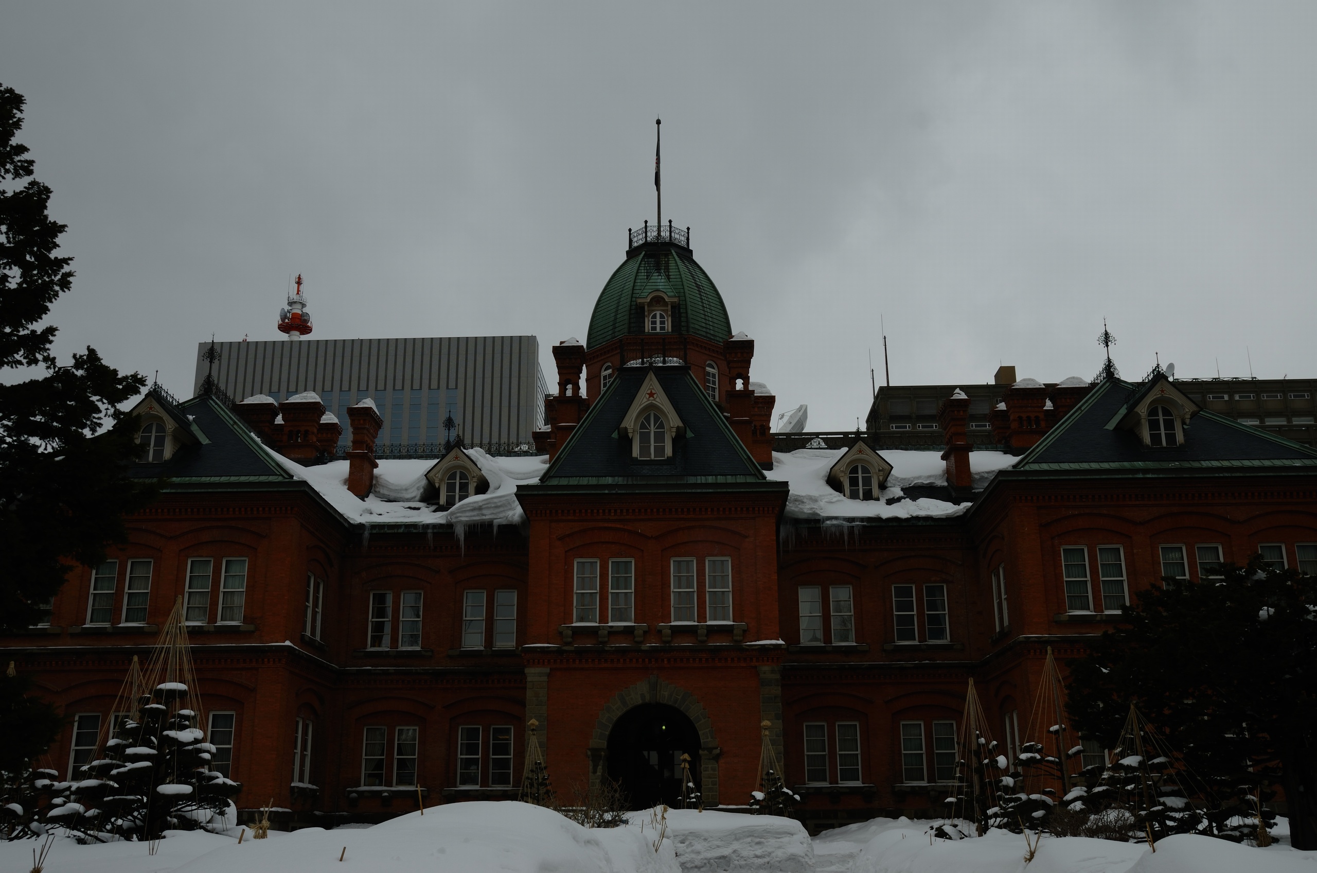 まず、上の写真は今年3月12日に撮影した北海道庁の赤レンガですが、これは絞り優先モードでF8.0に固定して撮影したものです。オート露出で撮影しているため、カメラが自動的に被写体の明るさを認識して適切なシャッター速度を設定してくれています。